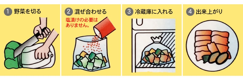 2.ボール又はポリ袋へうつし、本品1袋を全部入れてまんべんなく混ぜて下さい。