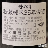 トップ > ●5001〜10000円の品 > 【古酒】500ml 笹の川 35年秘蔵純米古酒 箱無 常温発送 笹の川酒造の日本酒古酒 (福島県)