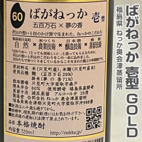 トップ > 米焼酎 > (米焼酎) 720ml ばがねっか1【壱型】 米焼酎 25度 GOLDラベル 箱無 常温発送 奥会津蒸留所の焼酎 (福島県)