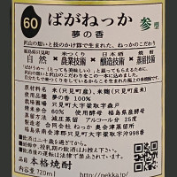 (福島県)ばがねっか参型 夢の香 米焼酎 25度